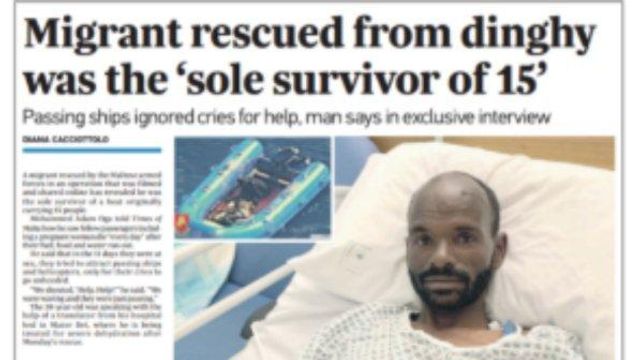 Dopo la morte dell'ultimo compagno, Mohammed rimane solo, abbracciato all'ultimo cadavere, fino all'arrivo dei soccorsi: "Dio ha mandato i maltesi a salvarmi. Sono felice. Sono sopravvissuto". Mohammed, partito nella speranza di raggiungere la Germania, è ora ricoverato al policlinico universitario "Mater Dei" di Msida.