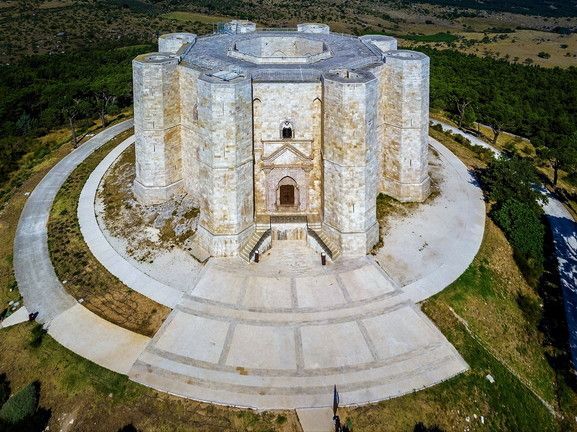 CASTELLO SVEVO, Castel Del Monte, Andria - Questa antica fortezza risale al XIII secolo. Fatta edificare da Federico II di Svevia, imperatore del Sacro Romano Impero e re di Sicilia, si trova sulla sommità di una collina sull'altopiano delle Murge, La sua curiosa forma ad ottagono domina tutti gli ambienti, tanto da evocare significati esoterici e magici legati al numero 8.