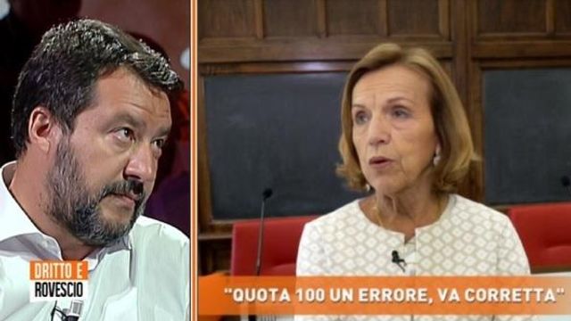 “Penso che quota 100 sia stata un grosso errore”. Così l’ex ministra del Lavoro e delle Politiche Sociali Elsa Fornero, intervistata da “Dritto e Rovescio” a proposito delle iniziative del governo gialloverde. “Abbiamo corso rischi gravissimi di impoverimento economico e civile - aggiunge Fornero - penso anche alle politiche sulle migrazioni, per le quali Salvini è colpevole”. L’economista e politica aggiunge poi che quella perseguita dall’ex ministro dell’Interno Matteo Salvini è una “politica malsana”. Pronta la replica di Salvini dallo studio: “Continuo a ritenere che la legge Fornero sia una delle leggi più sbagliate e infami della storia della Repubblica italiana”.