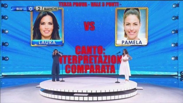 Pamela, che gioca per la squadra bianca, è commossa, ma anche la sua avversaria della squadra blu, Laura Torrisi, non risparmia le lacrime, tanto che la voce le si rompe alla fine della canzone. “Una delle paure maggiori di Laura è quella di cantare pubblicamente”, spiega Maria De Filippi.