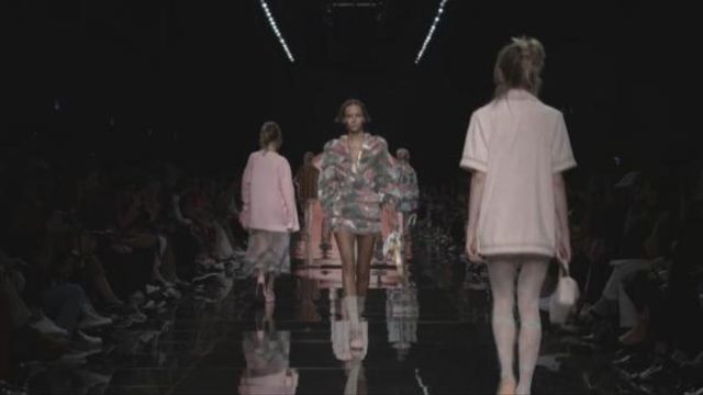 Short e pantaloni ampi in cotone cerato o biologico lavato incontrano giacche doppiopetto e in spugna, motivi floreali vetrificati o lussuoso suede. La pelliccia estiva è impreziosita da lycra floreale o lavorata a maglia, a ricreare un motivo check, mentre paillette trasparenti drappeggiate e maglie sottilissime rimandano alle dimensioni scultoree di lavorazioni trapuntate e cloqué.