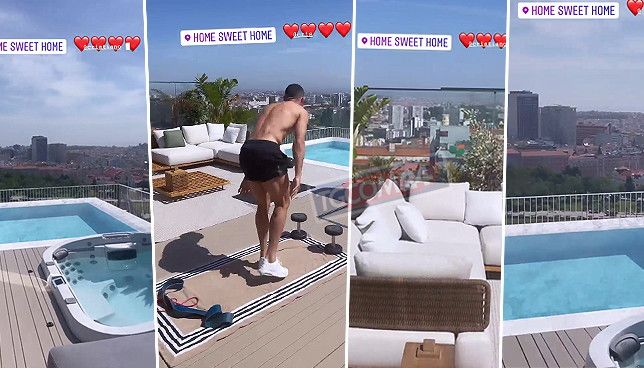 Vasca idromassaggio, piscina rettangolare, televisore con maxi-schermo, zona salotto, palestra e vista spettacolare su Lisbona. Questa la terrazza portoghese di Cristiano Ronaldo che si allena a petto nudo sotto il sole in una location casalinga da sballo. Georgina Rodriguez fa un breve filmato per i social in cui si vede Cr7 che fa gli addominali. I follower si dividono tra chi guarda il fisico del calciatore e chi il terrazzo da sogno.