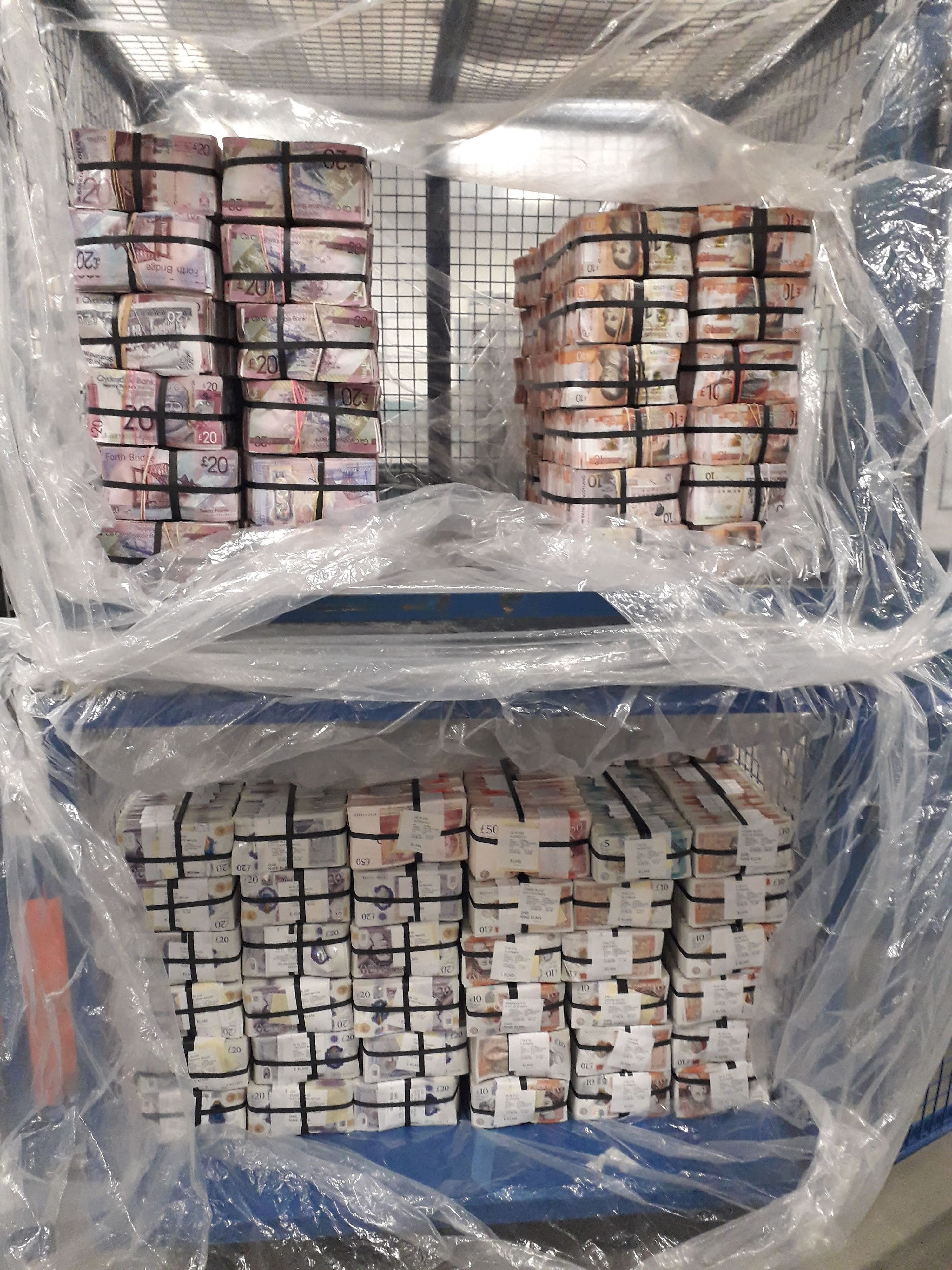 Gli agenti che sorvegliavano una casa nel quartiere londinese di Fulham avevano visto un uomo, Ruslan Shamsutdinov, mentre usciva dall'abitazione con pesanti borse che portava con "notevole difficoltà". L'uomo era stato fermato dopo che aveva caricato le borse contenenti parte del denaro su un'auto.