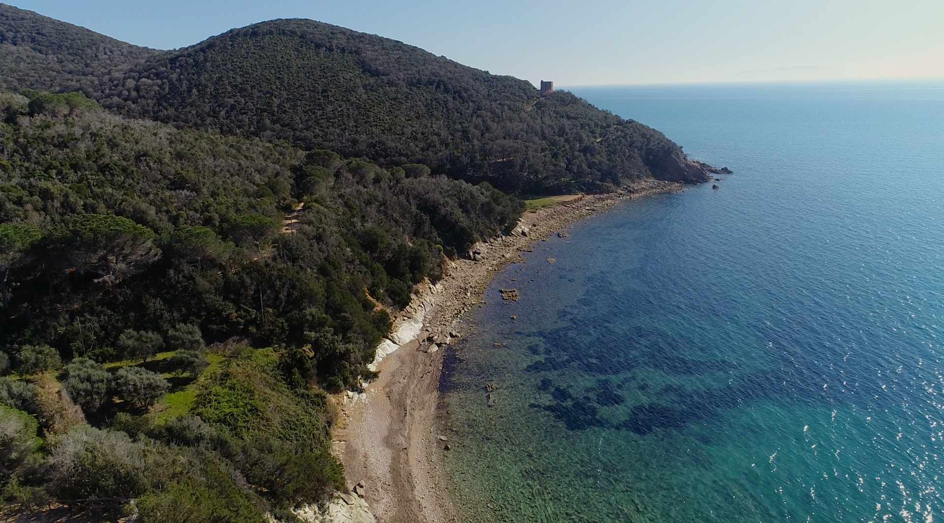 Un percorso meno impegnativo ma davvero entusiasmante è l’A2 Le Torri da farsi anche in modalità nordic walking: partenza dalla casa dei Pinottolai, fino al ponte di legno già citato; poi attraverso una fitta boscaglia il nostro viaggiatore raggiunge la Torre di Castelmarino (XII sec.) da dove può contemplare un panorama mozzafiato sul mare e le isole dell'Arcipelago Toscano. In basso passando per la pineta rigogliosa si raggiunge una spiaggia deserta, splendida, che farà venir voglia di trattenervisi: poi si raggiunge il promontorio di Collelungo e l'omonima Torre del XVI sec. Delle torri esistenti nel comprensorio del Parco la maggior parte fu costruita in funzione di difesa dai corsari e dislocata sui promontori che offrono una migliore visibilità sul mare. Nella seconda metà del 1500 il duca Cosimo dei Medici fece iniziare i lavori per le Torri di Castelmarino, Collelungo, Cala di Forno, agendo su opere preesistenti, così come per diverse altre torri costiere, realizzando globalmente un circuito difensivo ininterrotto che si estendeva da nord a sud.