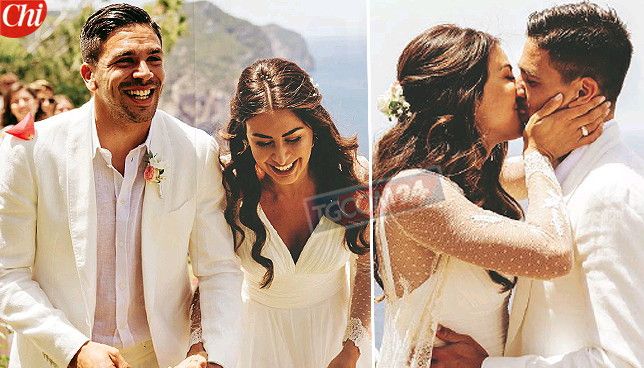 Giulia e Giovanni, che gioca con la maglia del Cagliari, stanno insieme da tre anni e sognavano un sì in grande stile. Hanno provato per sei volte a organizzare le nozze ma alla fine, approfittando della presenza dei nonni di lui in Euorpa (vivono in Argentina) hanno pianificato un white party per pochi intimi a base di musica e allegria. Anche Diego Simeone, ex calciatore di Inter e Lazio e allenatore dell'Atletico Madrid conosciuto come el Cholo, ha partecipato al brindisi, tutto vestito di bianco come richiesto agli invitati.
