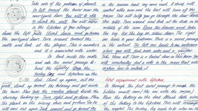Il giovane ha quindi deciso di acquistarlo scoprendo, una volta arrivato a casa, che all'interno della scatola non c'era solo la copia del gioco, ma alcune note scritte a mano che intendevano guidare il giocatore attraverso la trama, corredate da mappe e diagrammi esplicativi.