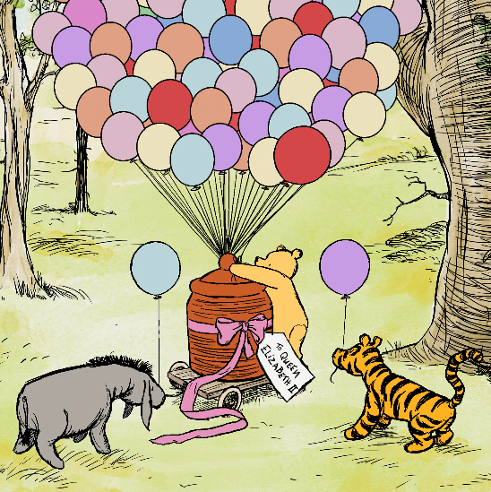 WINNIE THE POOH E LA REGINA ELISABETTA - Winnie The Pooh non è per niente estraneo alla Regina. Si crede infatti che la giovane Principessa Elisabetta fosse una fan dei classici racconti di A.A. Milne e che le venne regalato un set di porcellana di Christopher Robin, con immagini dipinte di Pooh e i suoi Amici. Il libro di A. A. Milne, "Teddy Bear and the Other Songs from When We Were Very Young", del 1926, venne dedicato alla Principessa Elisabetta per la sua nascita. Più recentemente, nel 2016, per celebrare il 90° anniversario di Winnie the Pooh e della Regina, fu pubblicato "Winnie the Pooh and the Royal Birthday", dove l'orsetto e la Regina si incontrano finalmente per la prima volta.