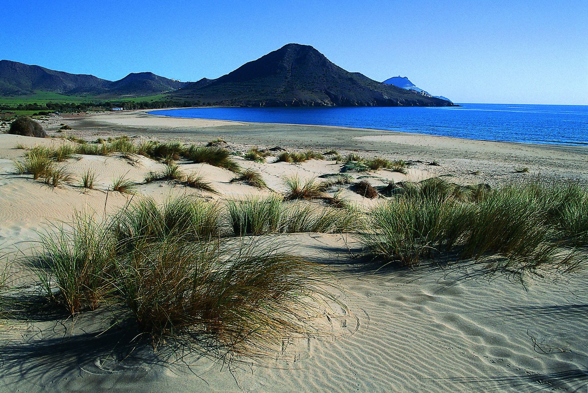 La spiaggia de Los Genoveses (Andalusia) - Situata a circa due chilometri dall’incantevole paesino di San José, la spiaggia de Los Genoveses invita a sognare, a scoprire uno spettacolare arenile tra mari e montagne, a camminare lungo una sabbia fine dal colore del sole, a sentirti in contatto con terra e cielo. Una terra magica, senza preoccupazioni, senza strade e... senza fine. All’arrivo si trova un sentiero perfettamente allestito per raggiungere la zona. Attraversa la spiaggia da nord a sud, dalla collina Ave María alla testata de Los Genoveses. . Vi sono state girate scene da film come “La pattuglia del deserto” o “Il vento e il leone” e a creare la tua storia.