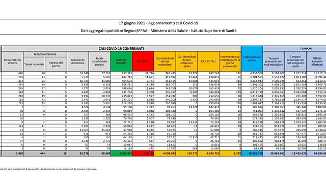 Nelle ultime 24 ore in Italia si sono registrati 1.325 nuovi casi di coronavirus a fronte di 200.315 tamponi effettuati (mercoledì i contagi erano stati 1.400 con 203.173 test). Il tasso di positività si attesta allo 0,7%, stabile rispetto al giorno precedente. I decessi sono stati 37, per un totale, da inizio pandemia, che arriva a 127.190. Guarite 4.533 persone.