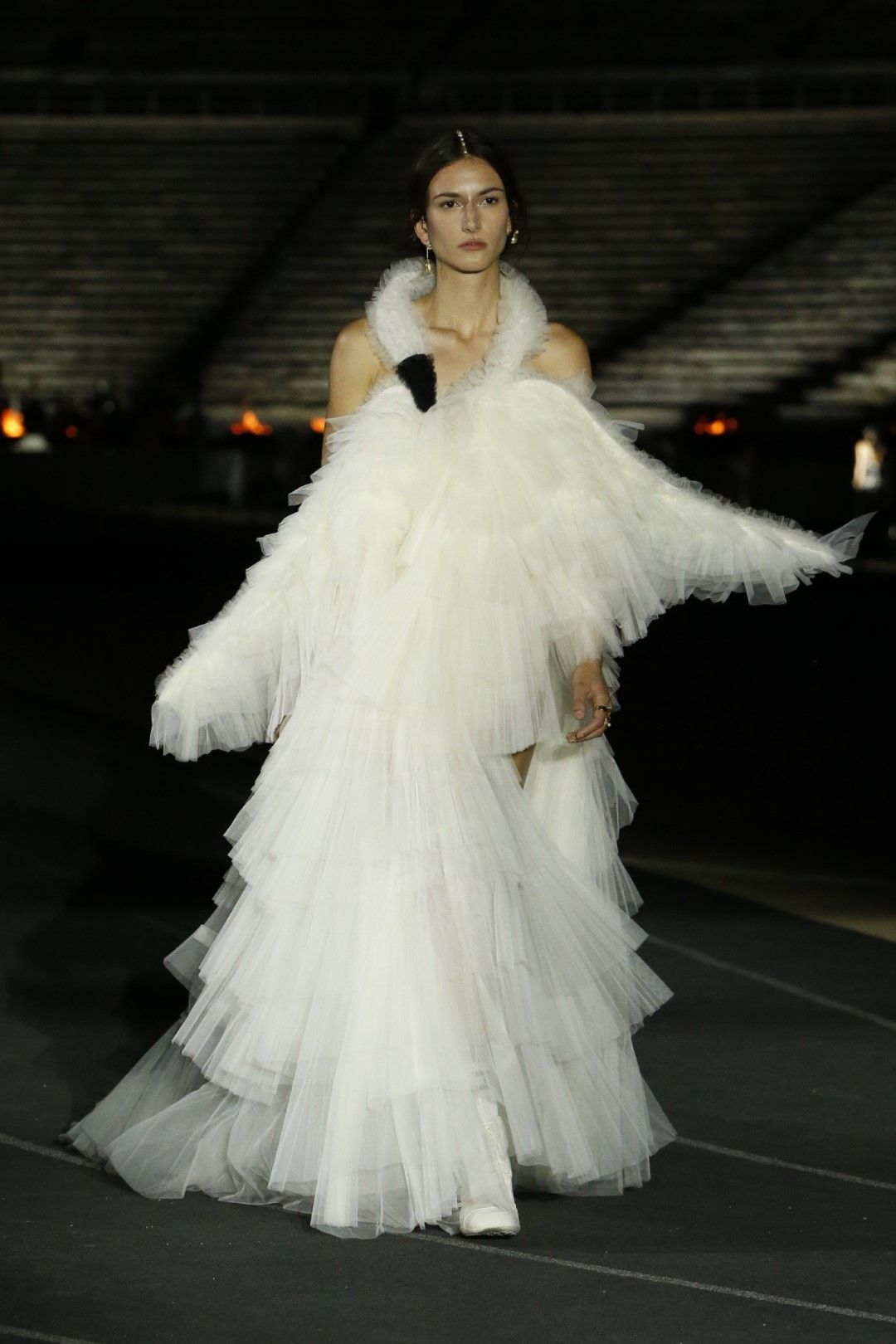 Andare alle radici della nostra civiltà. Non per nostalgia ma per il desiderio di ricomporre quella frammentazione che è la condizione che caratterizza il nostro modo di comprendere il mondo e di interiorizzarlo. La maison Dior ha scelto lo Stadio Panathinaiko ad Atene per presentare la collezione Cruise 2022. Nella città dedicata alla dea Atena, sfilano insieme pepli leggeri e bianchi, a evocare il marmo e le statue antiche, e le sneakers. C’è anche il blu della Grecia e l’oro.