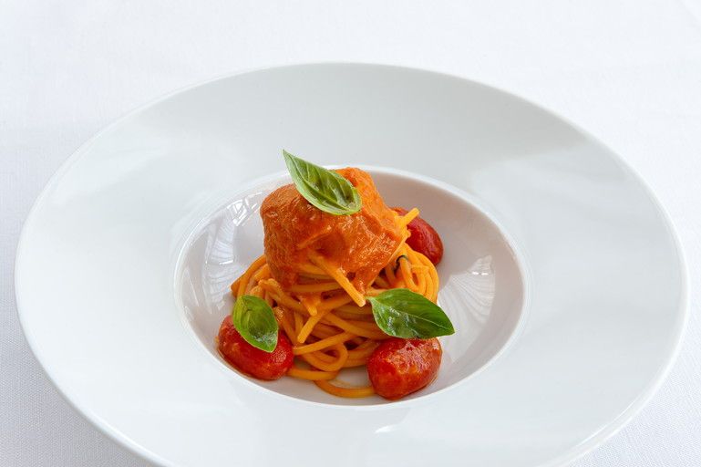 Assolutamente si, il Pomodoro! È la chiave dell’italianità nel mondo – li usiamo nella pasta al pomodoro, nel corso delle stagioni usiamo anche nove tipologie di pomodori diversi. Il pomodoro giallo, ad esempio, ora è sempre più utilizzato e la cucina lo sta riscoprendo, grazie anche al suo gusto profondo. Il rispetto per la materia prima è fondamentale in cucina.
