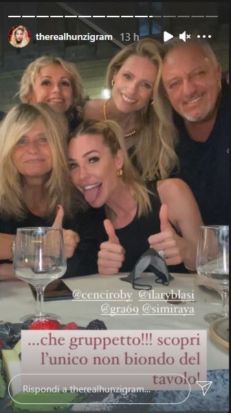 Davanti all'obiettivo, Ilary alza i pollici e fa la linguaccia mentre Michelle sfoggia uno dei suoi irresistibili sorrisi. "Che gruppetto! Scopri l'unico non biondo del tavolo!" scrive la Hunziker postando la foto su Instagram, prendendo di mira il "povero" Cenci. E conoscendo il carattere peperino della svizzera, e la verve "romanaccia" della Blasi, chissà quante battute e risate si saranno fatti tutti seduti a tavola, tra un bicchiere di vino e un piatto di spaghetti.