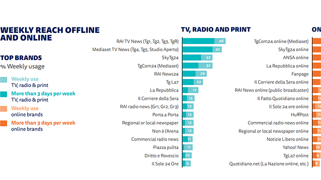 Per il terzo anno consecutivo, Tgcom24.it è la testata di informazione online più seguita dai lettori, come certificato dal Digital News Report del "Reuters Institute", autorevole rapporto in ambito internazionale. Il sito del sistema multimediale Mediaset ha raggiunto ogni settimana il 24% della popolazione. Tgcom24 è leader anche nella classifica dei canali all-news. L'informazione dei tg Mediaset supera quella Rai.