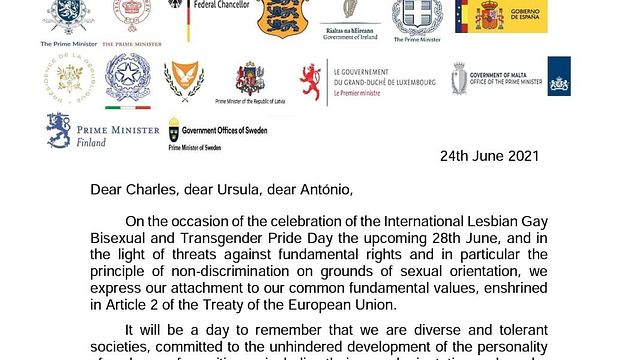 L'iniziativa non menziona esplicitamente la legge varata di recente da Budapest, ma arriva prima del vertice Ue, dove sarà sollevato il tema. Nella missiva si legge: "In occasione della giornata dell'orgoglio Lgbt, il 28 giugno, e alla luce delle minacce contro i diritti fondamentali, ed in particolare il principio di non discriminazione sulla base dell'orientamento sessuale, esprimiamo il nostro attaccamento ai nostri valori comuni fondamentali".
