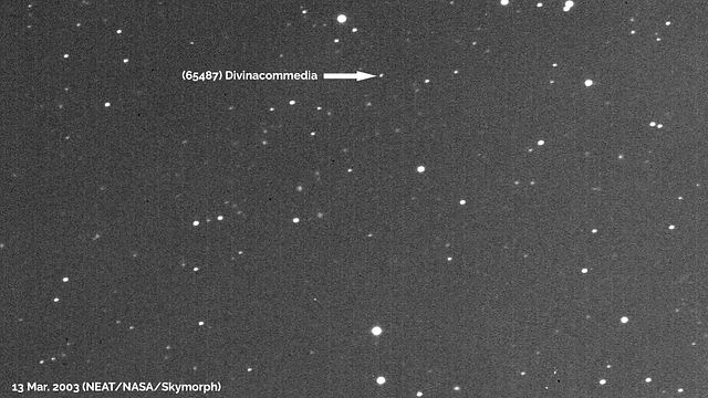 Dove si trova - "Divinacommedia" si trova nella fascia degli asteroidi fra Marte e Giove, a 381 milioni di chilometri dal Sole e impiega quasi quattro anni per completare un'orbita intorno alla nostra stella. Ha un diametro stimato di circa 3,5 chilometri e ruota su sé stesso in circa tre ore e mezza.