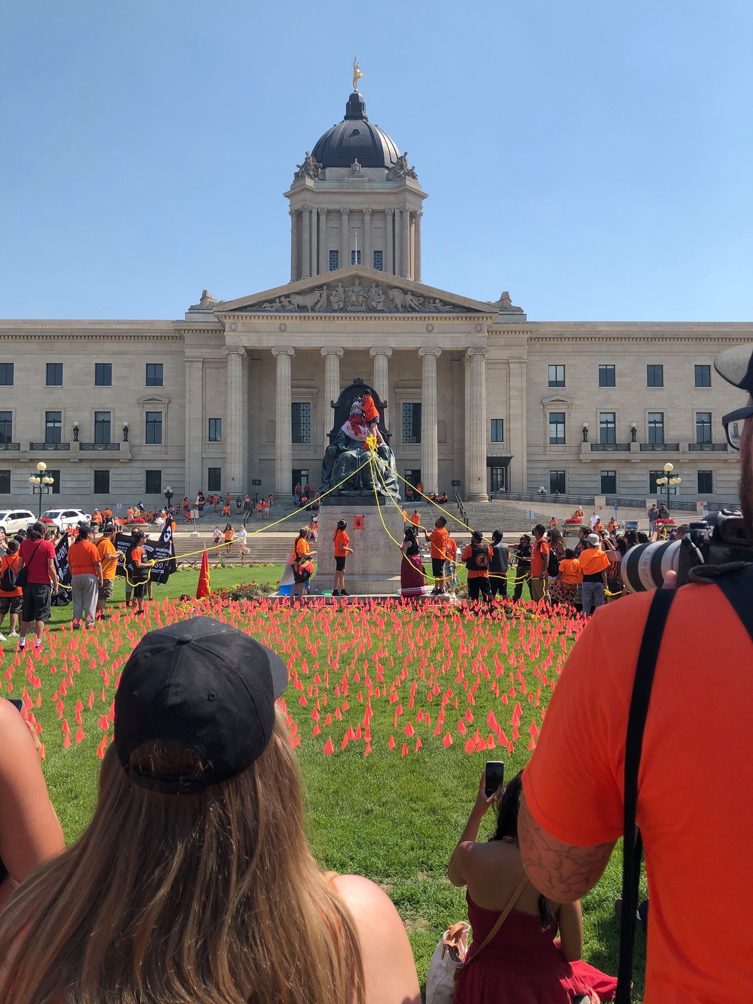 Le statue sono state abbattute in occasione del Canada Day, festa nazionale che si celebra il primo luglio. Come riporta la Bbc, a Winnipeg migliaia di persone sono scese in strada per onorare le vittime delle scuole residenziali e per sostenere le comunità indigene. Molti di loro indossavano una maglietta arancione, colore simbolo dei bambini che dal 19° secolo fino agli anni '90 furono costretti a frequentare scuole finanziate dallo Stato in una campagna che aveva l'obiettivo di assimilarli forzatamente a usi e costumi della società canadese.