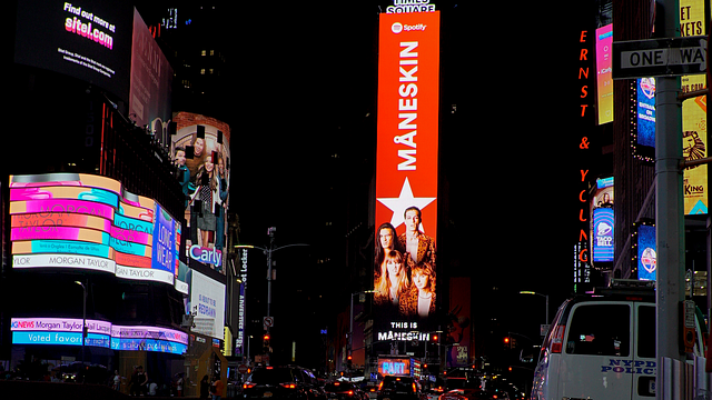 La corsa dei Maneskin non ha nessuna intenzione di volersi arrestare. Per sei giorni la band romana sarà protagonista a Times Square, con il Billboard di Spotify e una playlist a loro dedicata, "This Is Maneskin". Dopo la vittoria all'Eurovision e i risultati di streaming delle ultime settimane, un altro modo per conquistare il pubblico americano.