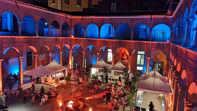 Per la serata nell'ospedale più antico d'Europa, un pianoforte è stato posizionato nel chiostro dei frati. E al calar del sole, via alla magia: note jazz per intrattenere e "trasportare" vaccinandi e operatori. Per un sabato sera decisamente diverso.