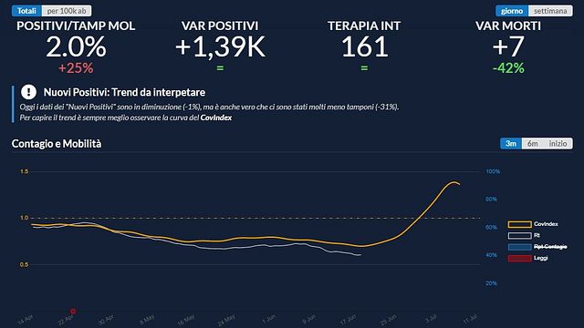L'incidenza delle infezioni da virus SarsCoV2 è aumentata in 19 regioni e in otto l'incremento settimanale è stato di oltre il 50%: è la mappa riportata nel sito CovidTrends. Nell'ultima settimana è stato il Molise a registrare l'incremento maggiore, con il 257%, con Sardegna (+146%) e Veneto (123%); seguono a distanza, con valori superiori al 50%: Lazio (+84%), Liguria (+71%), Emilia Romagna,Toscana e Campania (+56%).