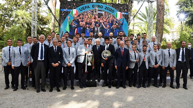 Il presidente della Repubblica Sergio Mattarella ha ricevuto al Quirinale l'Italia campione d'Europa e il tennista Matteo Berrettini, reduce dalla finale di Wimbledon. "Avete reso onore allo sport, questo non è il giorno dei discorsi ma dei complimenti", ha detto. "Avete meritato di vincere ben oltre i rigori, siete stati circondati dall'affetti dei tifosi italiani e lo avete ricambiato rappresentando bene il Paese", ha aggiunto rivolto agli Azzurri.