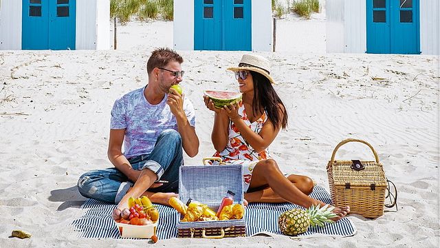 PER IL MARE O PER I MONTI – Un pasto elaborato richiede un certo tempo per la digestione, con la necessità di rinunciare al bagno in mare per almeno un paio d’ore dopo pranzo. Meglio optare per un picnic all’insegna della leggerezza, con alimenti facili e veloci da digerire, per poter tornare subito o quasi a sguazzare nell’acqua. Vanno benissimo panini con farciture semplici (prosciutto e insalata, tonno e pomodoro, prosciutto e verdure grigliate), oppure un trancio di pizza e della frutta, o ancora una porzione di insalata di riso. Se ci troviamo in montagna o tra i prati possiamo concederci qualche sfizio in più, dato che, dopo mangiato, possiamo rilassarci all’ombra e, se vogliamo, sonnecchiare anche un po’. Possiamo aggiungere al nostro picnic torte salate e quiches, una fetta di torta casereccia o di crostata, un bicchiere di vino. Se poi ci troviamo in alta montagna, l’aria frizzante e l’attività fisica in più trovano soddisfazione con qualche quadretto di cioccolato fondente.