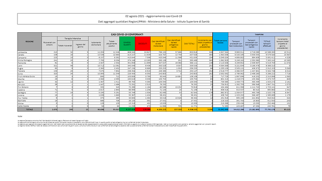 I casi totali Il totale dei casi da inizio pandemia sale a 4.358.533 mentre quello dei decessi è di 128.088. I dimessi e i guariti sono invece 4.137.428. Gli attualmente positivi sono 93.017, in aumento di 1.667 unità nelle ultime 24 ore.