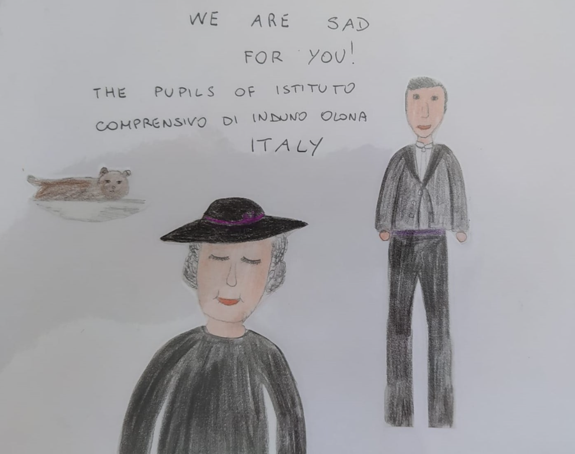 "Siamo tristi per lei" - Un ritratto della coppia reale accompagnato da altri disegni e da poche parole scritte in inglese: "We are sad for you!", "Siamo tristi per lei!" hanno scritto i bambini nel loro messaggio da inviare direttamente a Palazzo. Con la speranza di ricevere, un giorno, una risposta da sua maestà.