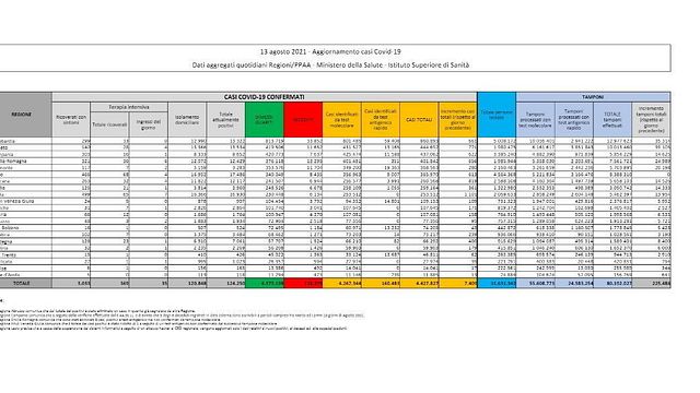 I numeri della pandemia Secondo i dati del ministero della Salute, gli ingressi odierni nelle terapie intensive sono stati 35 (giovedì erano stati 37). I ricoverati con sintomi nei reparti ordinari sono 3.033, con un incremento di 58 unità rispetto a ieri. Gli attualmente positivi salgono a 124.250, con un incremento di 2.965 nelle ultime 24 ore.