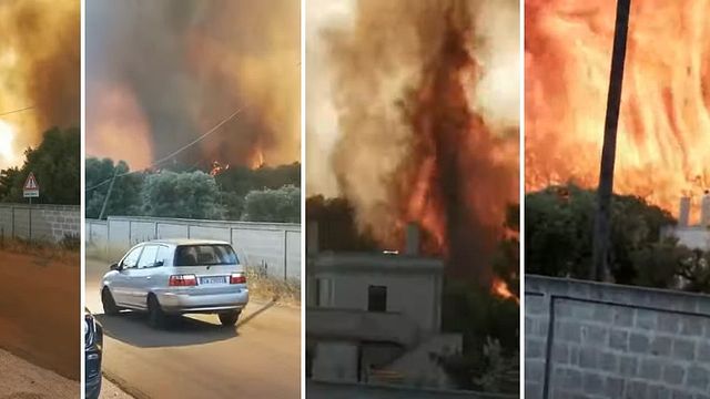 Devastante incendio a Grottaglie (Taranto) - Un incendio ha creato il panico nella popolazione a Grottaglie (Taranto). Le fiamme scoppiate nel pomeriggio nella macchia mediterranea, hanno lambito le case. Ventuno le unità dei vigili del fuoco entrate in azione per fermare l'incendio. Intervenuta anche una unità aerea.