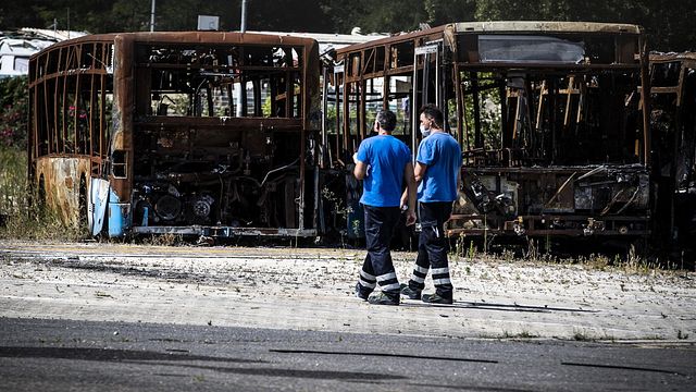 Un incendio che ha coinvolto tre autobus di linea è divampato nella notte nel deposito Atac di via della stazione di Grottarossa a Roma. E' accaduto intorno alle 4:30. Sul posto vigili del fuoco e carabinieri. Sembra che le fiamme siano partite da un bus parcheggiato nel piazzale e abbiano coinvolto due mezzi che si trovavano accanto. Sono in corso accertamenti per stabilire le cause.