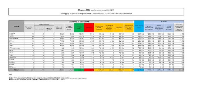 I numeri della pandemia Sono 548 i pazienti ricoverati in terapia intensiva per il Covid in Italia, 23 in più rispetto a ieri nel saldo tra entrate e uscite. Gli ingressi giornalieri sono invece 50. I ricoverati con sintomi nei reparti ordinari sono 4.264, 131 in più rispetto a domenica.