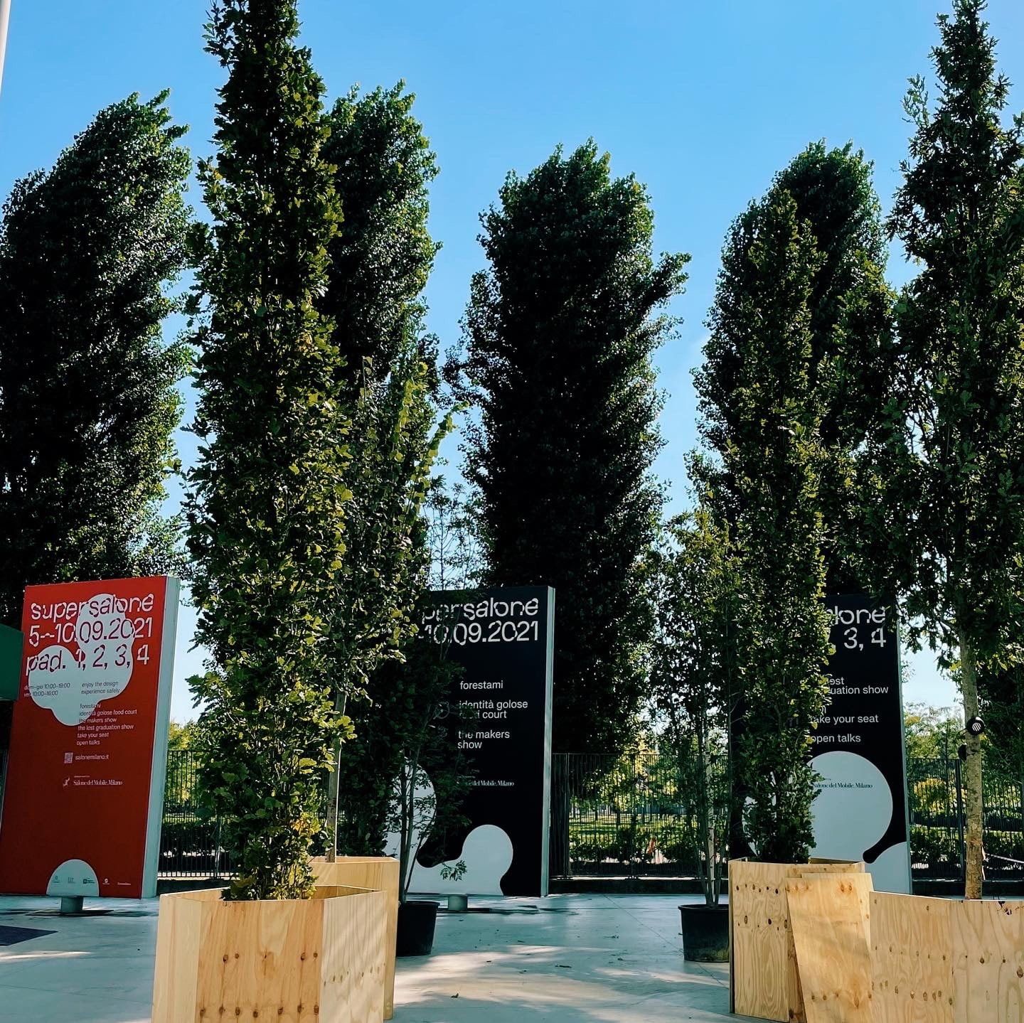 Si tratta di una sorta di piccolo bosco realizzato con la collaborazione tra il Salone del Mobile e Forestami, il progetto che prevede di piantare 3 milioni di alberi nella città metropolitana di Milano entro il 2030. Il bosco non si ferma all'ingresso, ma si snoda fin nel cuore della manifestazione: altri cento alberi ad alto fusto sono stati posizionati all'interno delle varie aree espositive e in zone relax.