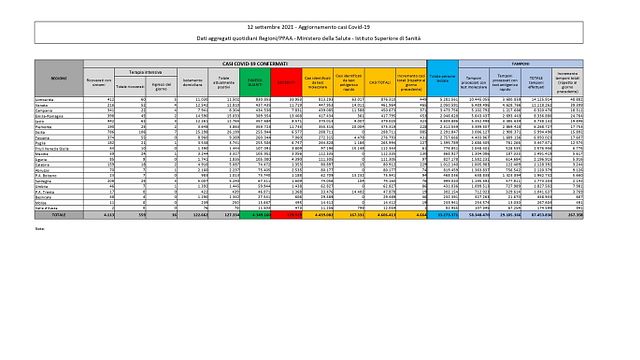 Vaccini - Nelle ultime 24 ore sono state somministrate 184mila dosi (65mila prime + 119mila seconde), per un totale di 80,8 milioni su 91.8 milioni di dosi consegnate. Nell'ultima settimana sono state inoculate in media 244mila dosi al giorno (84mila prime + 159mila richiami). A questo ritmo l'obiettivo del governo (l'80% degli over 12 con ciclo completo entro settembre) sarà raggiunto tra un mese e 16 giorni (il 28 ottobre).