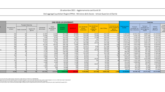 I casi totali Dall'inizio della pandemia i casi sono 4.609.205. I dimessi e i guariti sono invece 4.353.346, mentre gli attualmente positivi sono 125.904, con un calo di 1.430 casi nelle ultime 24 ore.