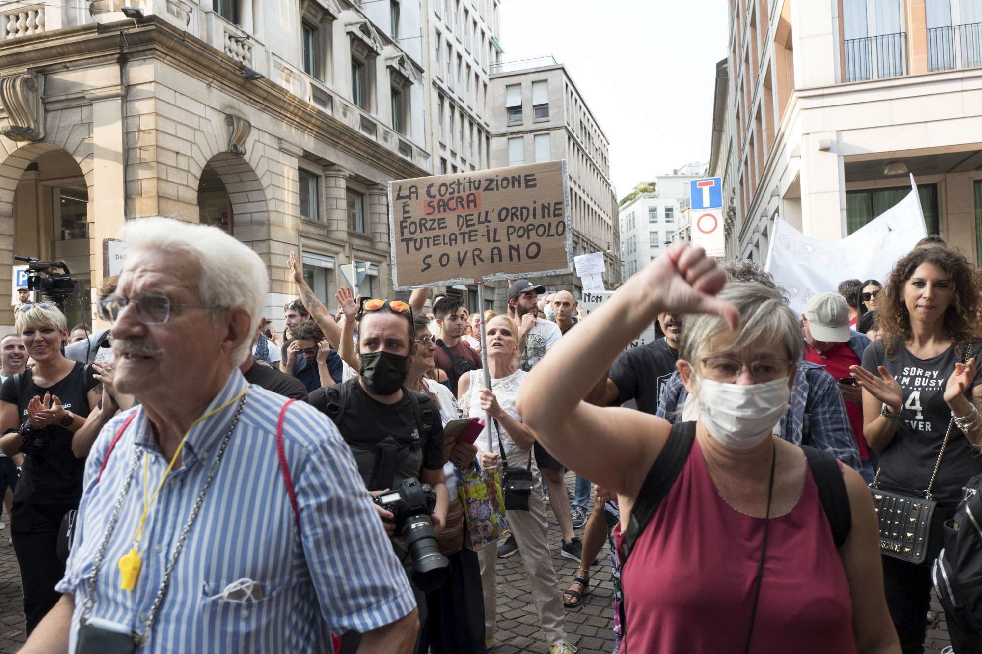 Tra i bersagli degli insulti dei manifestanti, anche il premier Mario Draghi, il sindaco di Milano Giuseppe Sala, il ministro della Salute, Roberto Speranza e il virologo Roberto Burioni.