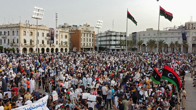 Migliaia di persone hanno manifestato a Tripoli per denunciare una mozione di sfiducia approvata dal parlamento libico contro il governo di transizione, a tre mesi da elezioni cruciali per il futuro della Libia. Alcuni dei manifestanti hanno sventolato la bandiera nazionale rossa, verde e nera, rispondendo così all'appello del capo del governo di transizione con sede a Tripoli, Abdelhamid Dbeibah, che aveva chiesto una "grande manifestazione".