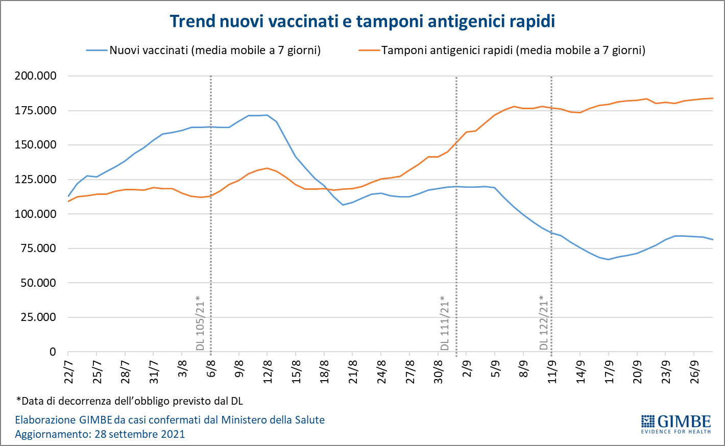 "Ormai da 4 settimane consecutive continuano a scendere i nuovi casi settimanali di Covid: anche sul fronte dei contagi iniziano a intravedersi i risultati della campagna vaccinale, con oltre il 71% della popolazione che ha completato il ciclo". Lo dichiara Nino Cartabellotta, presidente della Fondazione Gimbe, commentando i dati dell'ultimo report settimanale che mostra tutti gli indici in calo periodo 22-28 settembre 2021 rispetto ai sette giorni precedenti.
