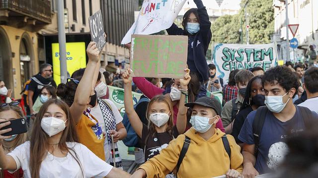 Il corteo dei giovani attivisti contro il cambiamento climatico, guidato da Greta Thunberg e Vanessa Rakate, ha raggiunto Piazza Affari dopo numerose pause lungo il percorso milanese. Ad accogliere i manifestanti uno striscione con la scritta "O la Borsa o la vita". Poco prima di raggiungere il Palazzo della Borsa, gli attivisti hanno cantato in coro saltellando '"Chi non salta Cingolani è", riferendosi al Ministro della Transizione Ecologica.