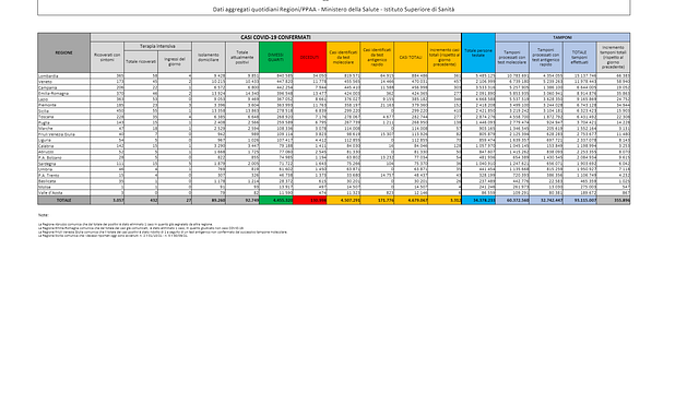 La situazione negli ospedali - Sono 432 i pazienti ricoverati in terapia intensiva per il Covid in Italia, in aumento di 3 rispetto a ieri nel saldo tra entrate e uscite. Gli ingressi giornalieri, secondo i dati del ministero della Salute, sono 27 (ieri erano 20). I ricoverati con sintomi nei reparti ordinari sono 3.057, ovvero 61 in meno di ieri.