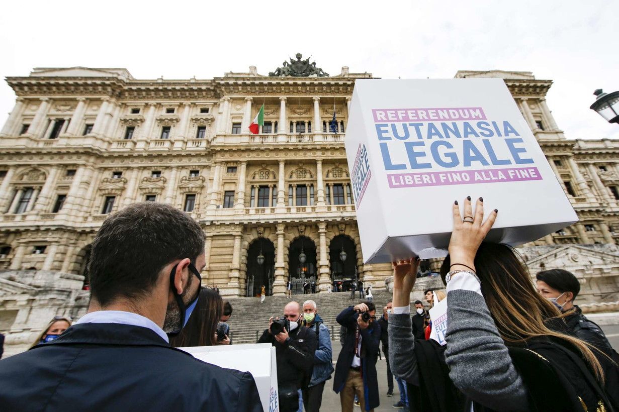 Prima di entrare in Cassazione, i vertici dell'associazione Luca Coscioni hanno tenuto una manifestazione in piazza Cavour. C'erano tra gli altri Marco Cappato, tesoriere, Filomena Gallo, segretario nazionale, Mina Welby e Marco Gentili, co-presidenti, Valeria Imbrogno, compagna di Fabiano Antoniani (Dj Fabo) e coordinatrice del Numero Bianco sul fine vita, insieme a tanti volontari che si sono mobilitati durante l'estate per la raccolta firme di questa campagna referendaria.