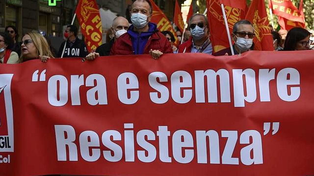 "In questa piazza c'è la nuova Resistenza". Lo ha detto, dal palco della manifestazione indetta dai sindacati confederali a Roma, il segretario della Uil Pierpaolo Bombardieri. "La Resistenza - ha aggiunto - che è quella che ha combattuto il fascismo. Vogliamo riaffermare i valori della democrazia, della partecipazione e del rifiuto della violenza".