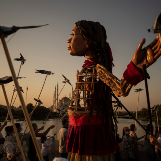 Il viaggio intercontinentale di Little Amal sta volgendo al termine. Il gigantesco burattino, raffigurante una bambina siriana, raggiungerà il Regno Unito, dopo aver camminato per migliaia di chilometri attraverso l’Europa. Il cammino di Amal si concluderà sulla spiaggia di Folkestone, nel Kent, dopo aver percorso le stesse tappe che più di 17mila siriani hanno intrapreso quest’anno per fuggire da conflitti, fame e persecuzione. Amal è partita alla fine di luglio dal confine turco-siriano, a Gaziantep, e, nell'ultima tappa del suo viaggio, visiterà le principali città della Gran Bretagna, fino ad arrivare a Manchester.
