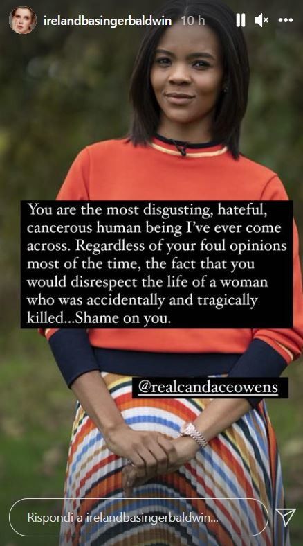 Sovrapponendo il commento su una foto di Candace, Ireland non ha usato mezzi termini e ha scritto: "Indipendentemente dalle tue opinioni ripugnanti per la maggior parte del tempo, il fatto è che manchi di rispetto alla vita di una donna che è stata accidentalmente e tragicamente uccisa... Vergognati.". E ha poi aggiunto che si prenderà una pausa dai social, dopo tutto questo per "non respirare la stessa aria tossica che respira questa donna".