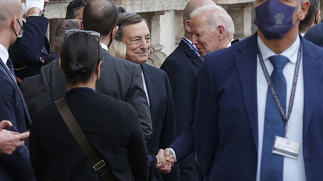 Dopo aver incontrato Papa Francesco in Vaticano e Sergio Mattarella al Quirinale, Joe Biden si è recato a Palazzo Chigi per un colloquio con il presidente del Consiglio Mario Draghi a margine del G20. I due leader sono stati accompagnati dalle rispettive mogli, Jill Biden e Serena Draghi. Il picchetto d'onore dei Lancieri di Montebello ha accolto gli ospiti intonando gli inni nazionali.