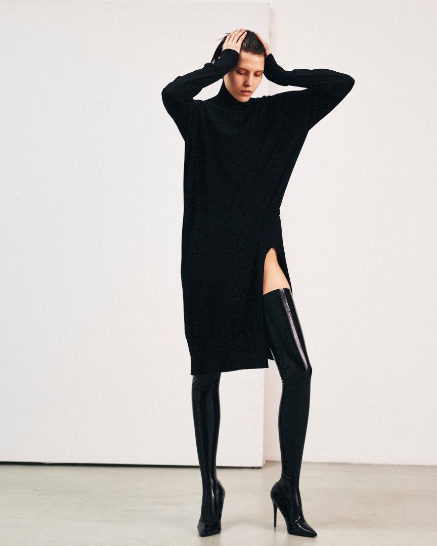Il rigore, la pulizia delle linee e delle forme, l’essenzialità priva di orpelli, l’erotismo del corpo in movimento, togliere piuttosto che aggiungere, scoprire il fisico anziché nasconderlo, attraverso dettagli cut-out come finestre sulla pelle.