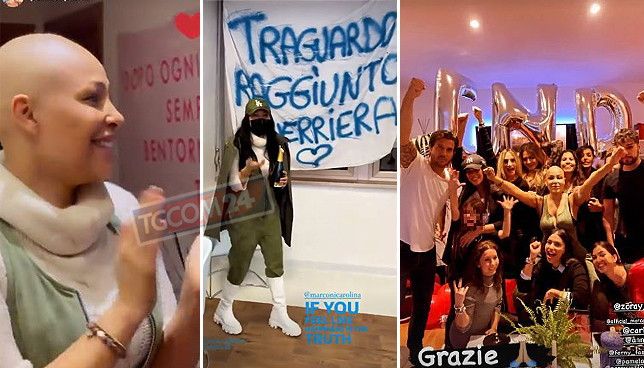 Dopo l’ultima chemio in ospedale, nella sala d’attesa è stata posizionata la scritta “traguardo raggiunto guerriera” e Carolina ha tagliato il nastro commossa e ha stappato una bottiglia. Poi una volta a casa ad attenderla ha trovato gli amici per un commovente brindisi. “Sei un esempio per tutti” le hanno scritto sui social.