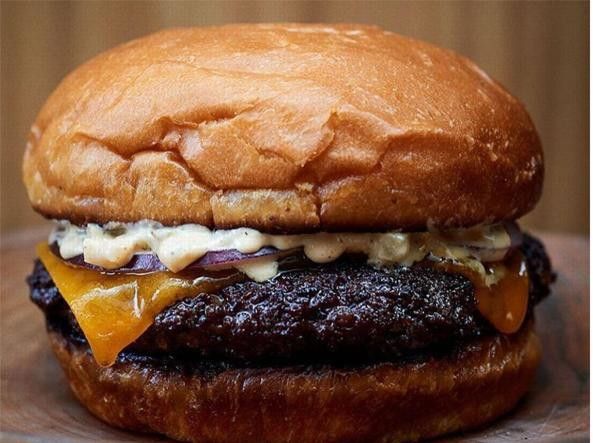 Cuocete l'hamburger e prima di toglierlo dal fuoco fate sciogliere sopra la carne del pecorino di Fossa. Condite con insalatina di campo, pomodoro canestrino, cipolle di Certaldo sfumate in padella con aceto di vino rosso.