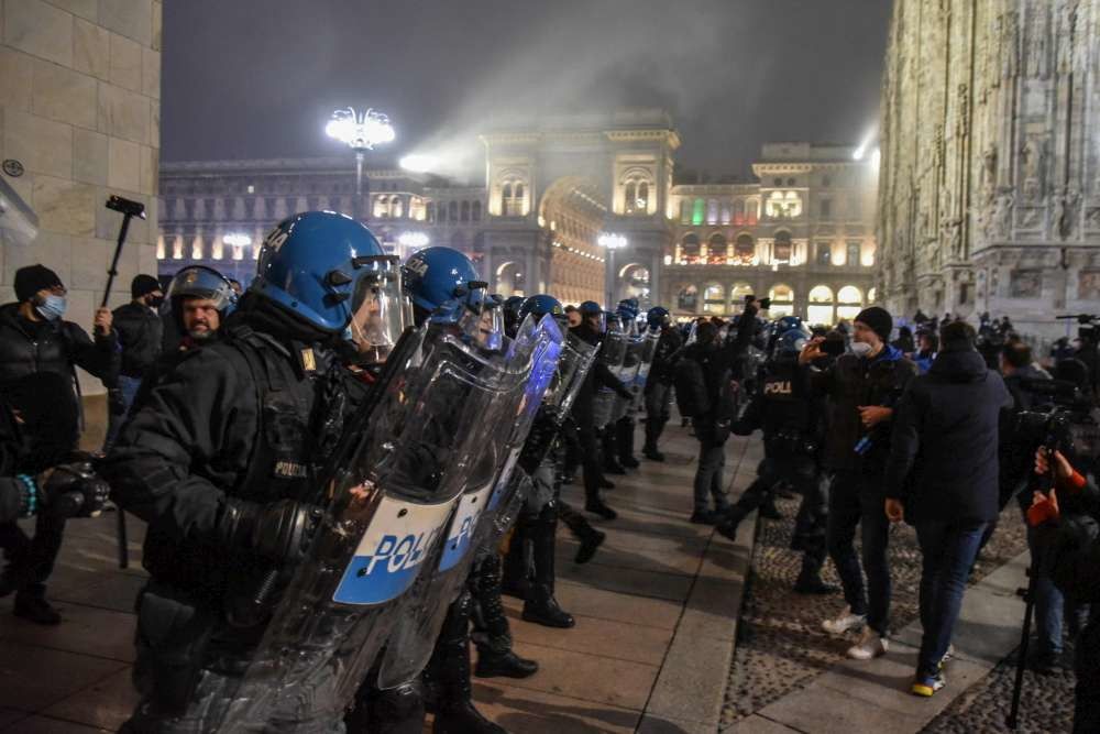 Nel capolouogo lombardo, dopo un'ora di tensioni, spintoni e corse, la polizia è riuscita a isolare tre gruppi di manifestanti con un doppio cordone per contenerli. Molte le persone controllate in piazza Duomo, tra insulti e urla rivolti agli agenti. Una donna, rifiutando di dare i documenti, ha morso un funzionario della Questura. Una attivista No pass ha inseguito in bici un poliziotto in borghese gridando "al ladro" e accusandolo di averle strappato un cartello, in realtà sequestrato.