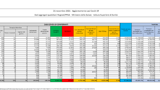 Dall'inizio della pandemia i casi totali sono 4.925.688, i morti 133.177. I dimessi e i guariti sono invece 4.643.751, con un incremento di 4.302 rispetto a sabato.
