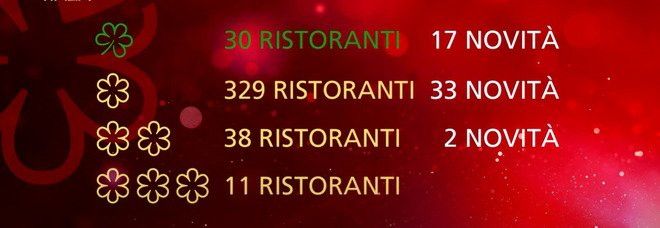 I ristoranti tre Stelle sono stati tutti confermati, ma ci sono diverse novità tra i premiati dell’una e delle due Stelle. Tra le 36 novità stellate che hanno delineato una nuova costellazione in 14 regioni italiane, figurano 2 new entry due stelle e 34 novità 1 stella, per un totale di 378 ristoranti stellati.